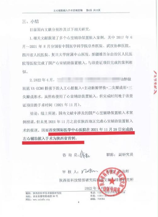 陜西省第一例左心輔助裝置植入手術(shù)查新證明