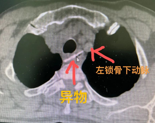 3厘米“V”形雞骨頭卡在食道,咽不下去,吐不出來,更為嚴重的是,這根硬骨頭距離左鎖骨下動脈僅2㎜......