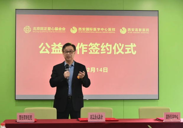 2月14日上午,西安國(guó)際醫(yī)學(xué)中心醫(yī)院、西安高新醫(yī)院與北京屈正愛心基金會(huì)公益合作簽約儀式在西安國(guó)際醫(yī)學(xué)中心醫(yī)院保障樓舉行,北京屈正愛心基金會(huì)創(chuàng)始人屈正、理事魏曉輝,國(guó)際醫(yī)學(xué)副總裁孫文國(guó),西安國(guó)際醫(yī)學(xué)中心醫(yī)院院長(zhǎng)尹強(qiáng),西安高新醫(yī)院總經(jīng)理范郁會(huì)、院長(zhǎng)宋瑛及醫(yī)院相關(guān)部室、??漆t(yī)院負(fù)責(zé)人等出席活動(dòng),西安國(guó)際醫(yī)學(xué)中心醫(yī)院副院長(zhǎng)付強(qiáng)主持儀式。