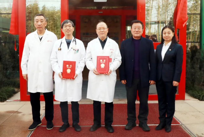 王志峰總經(jīng)理為特需門診的專家代表----胸科醫(yī)院朱運奎副院長和內(nèi)分泌代謝病醫(yī)院姬秋和院長頒發(fā)聘書。
