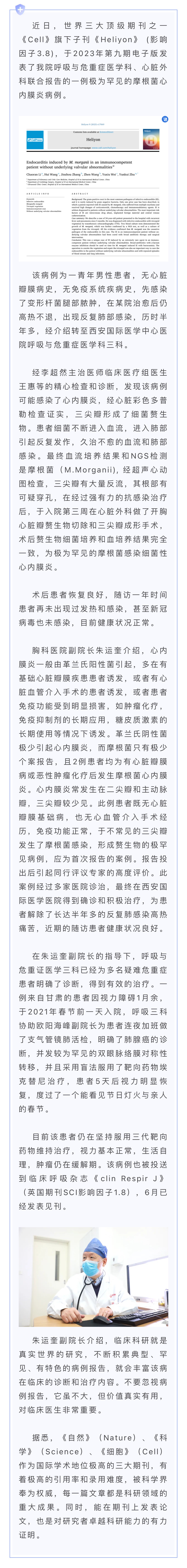 我院呼吸內科在《Cell》旗下子刊《Heliyon》報告一例極為罕見的摩根菌心內膜炎病例