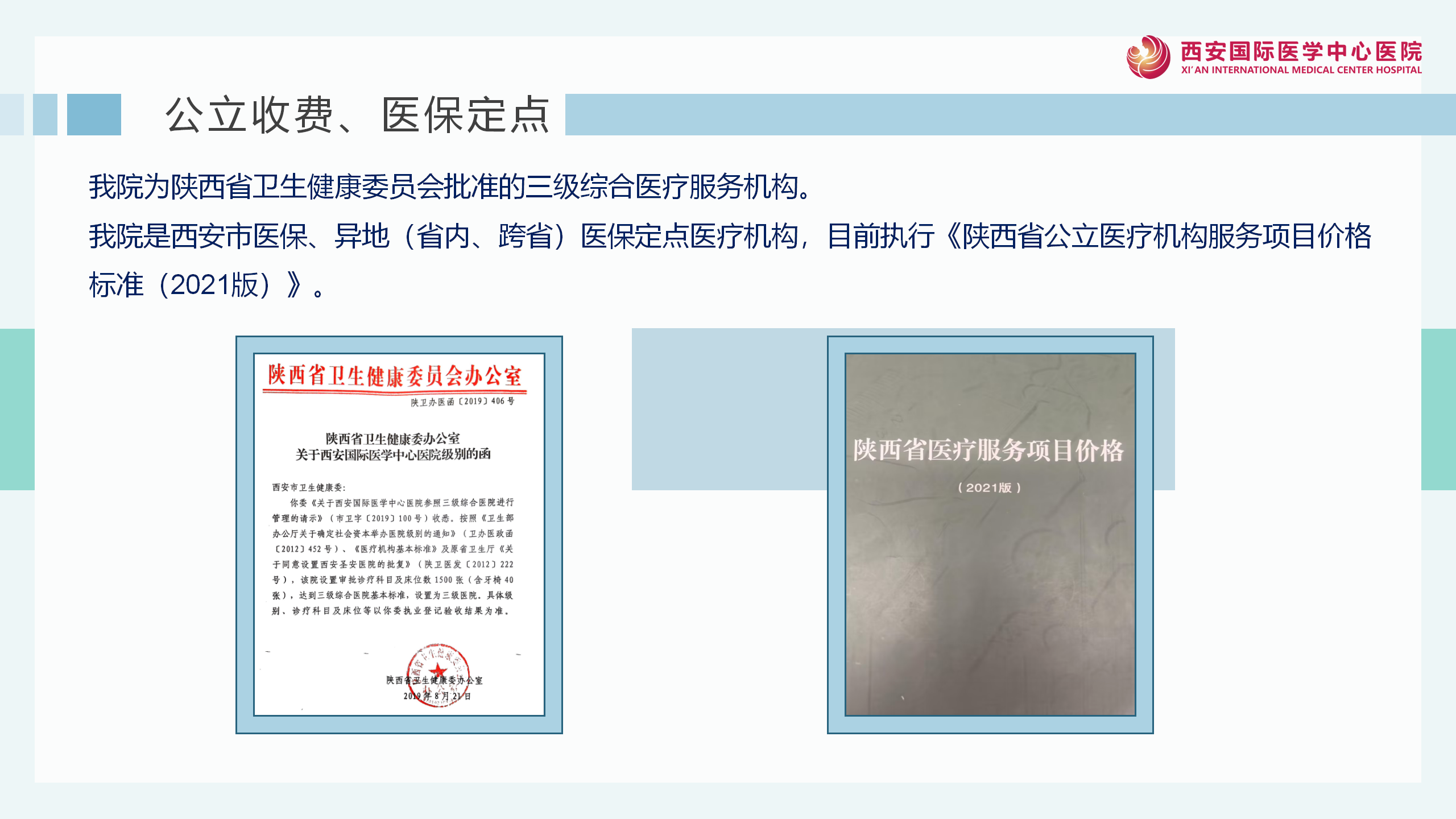 • 國(guó)內(nèi)首家高分通過(guò)JCI認(rèn)證的醫(yī)院 西安國(guó)際醫(yī)學(xué)中心醫(yī)院為國(guó)內(nèi)首家高分通過(guò)JCI認(rèn)證的醫(yī)院,該稱號(hào)由國(guó)際醫(yī)療機(jī)構(gòu)認(rèn)證聯(lián)合委員會(huì)頒布。