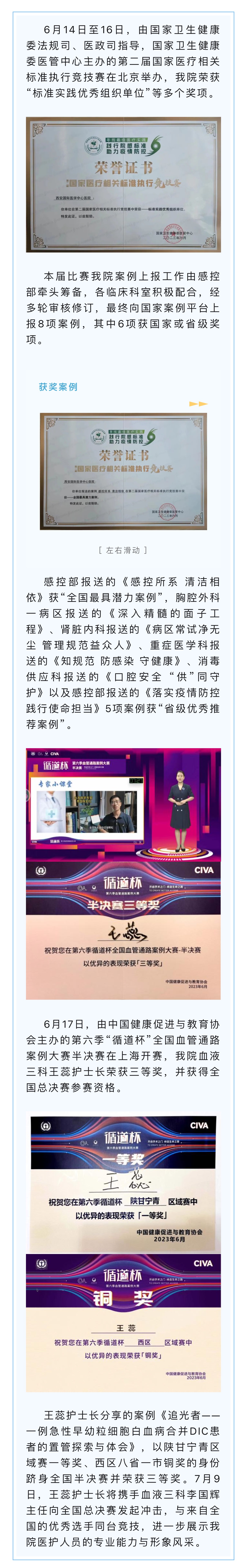 我院在第二屆國(guó)家醫(yī)療相關(guān)標(biāo)準(zhǔn)執(zhí)行競(jìng)技賽及第六季“循道杯”全國(guó)血管通路案例大賽中獲多個(gè)獎(jiǎng)項(xiàng)