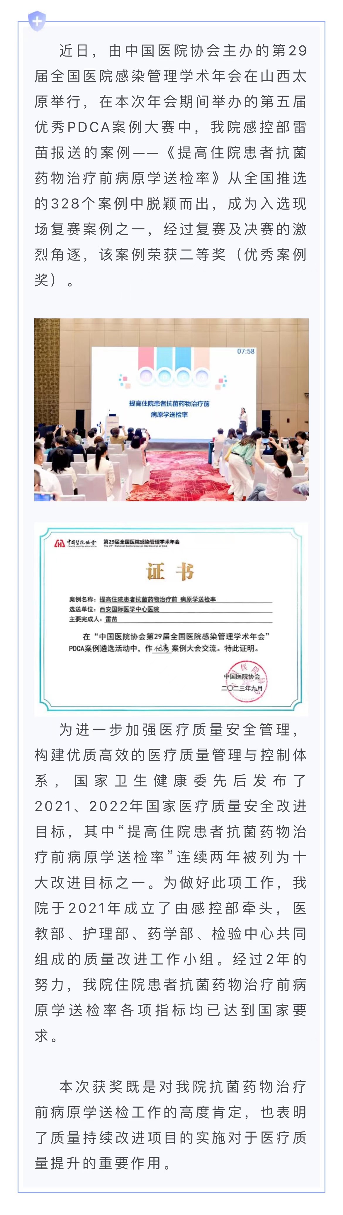 我院榮獲全國醫(yī)院感染管理學術年會第五屆PDCA案例大賽二等獎
