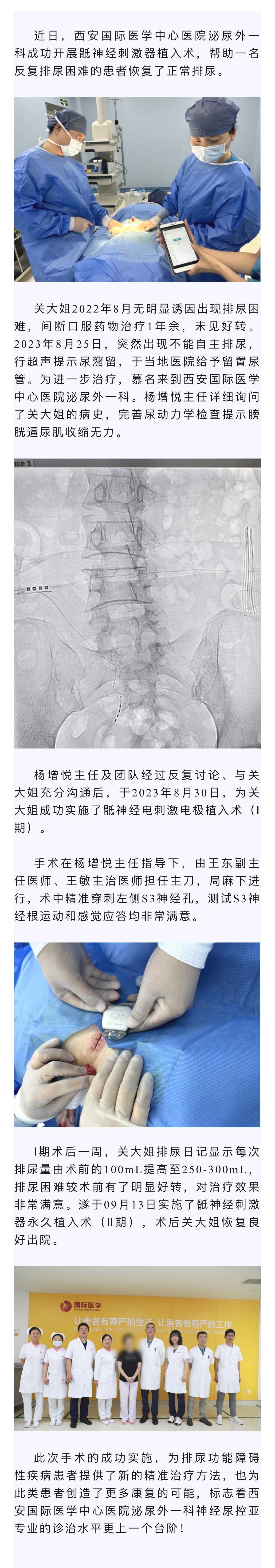 小小設(shè)備解決排尿大問題——西安國際醫(yī)學中心醫(yī)院泌尿外科成功開展骶神經(jīng)刺激植入術(shù)