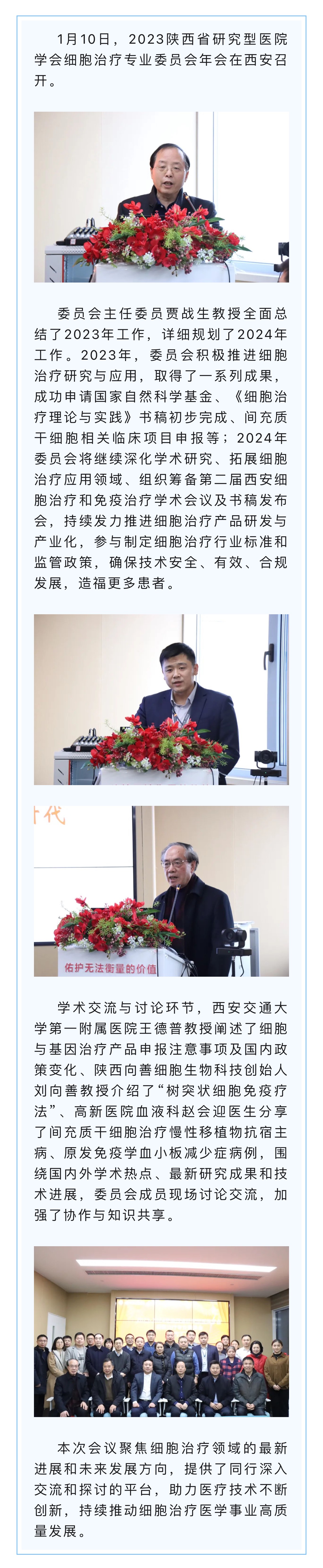 陜西省研究型醫(yī)院學會細胞治療專業(yè)委員會年會在西安召開