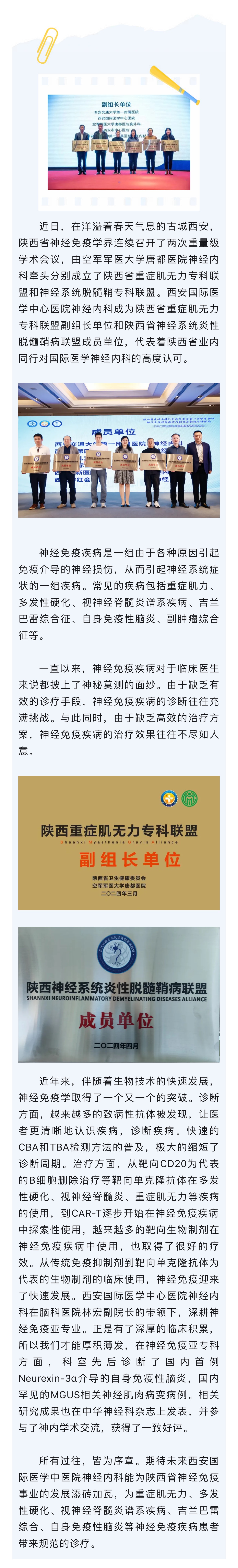 西安國際醫(yī)學(xué)中心醫(yī)院加盟陜西省重癥肌無力專科聯(lián)盟和陜西省神經(jīng)系統(tǒng)炎性脫髓鞘病聯(lián)盟