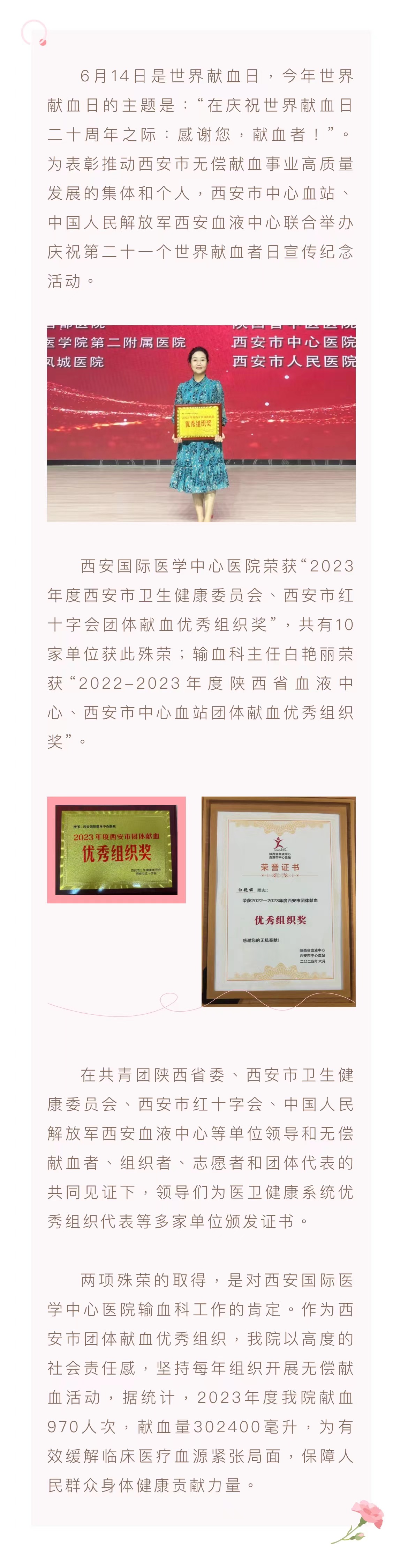 感謝您,獻(xiàn)血者!我院再獲兩項(xiàng)殊榮