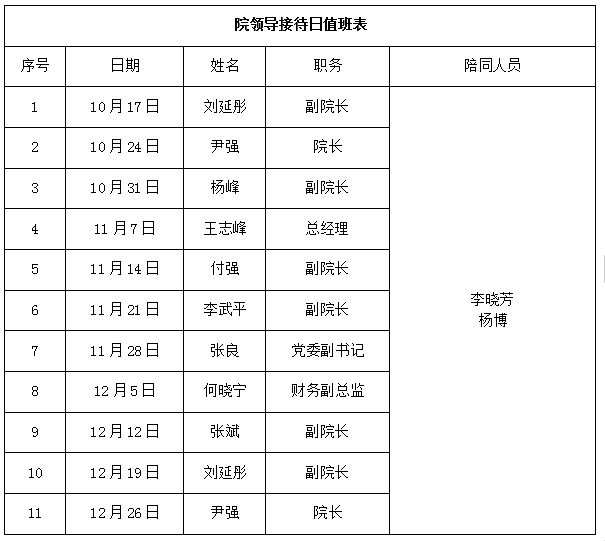 西安國(guó)際醫(yī)學(xué)中心醫(yī)院院領(lǐng)導(dǎo)接待日排班表