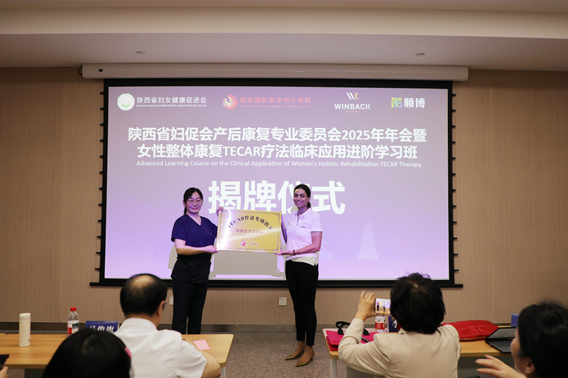 UFP教學(xué)醫(yī)院物理治療師INES與產(chǎn)后及盆底康復(fù)科主任徐海洋共同為我院“TECAR療法專項(xiàng)技術(shù)陜西省示范中心”揭牌。