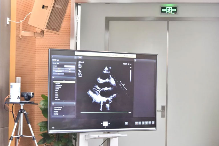 5G遠(yuǎn)程會(huì)診現(xiàn)場(chǎng),西安國際醫(yī)學(xué)中心心內(nèi)科張衛(wèi)澤主任、超聲科陳姍姍主任打開4K高清顯示器,屏幕上立刻出現(xiàn)了商洛國際醫(yī)學(xué)中心的B超畫面,一位醫(yī)生正在為患者做心臟B超,隨著探頭的轉(zhuǎn)動(dòng),超聲機(jī)器上的畫面清晰可見,雖然兩家醫(yī)院相距一百多公里,但畫面流暢,沒一點(diǎn)拖沓。