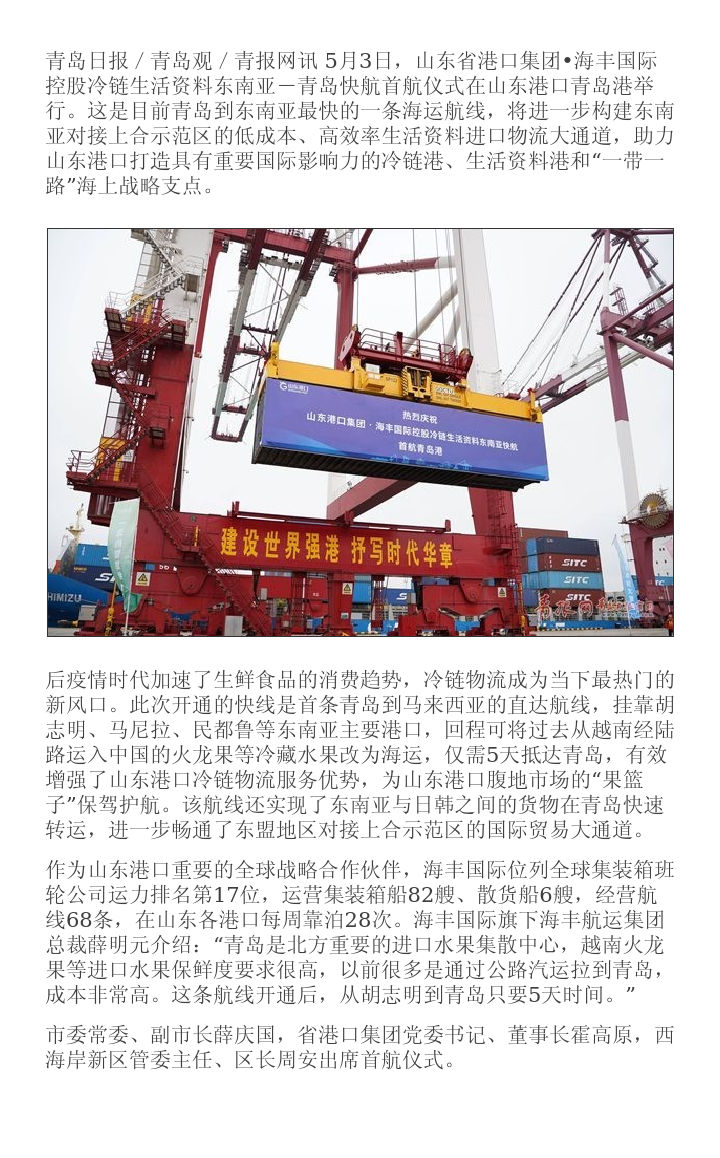 山東省港口集團(tuán)?海豐國際控股冷鏈生活資料?東南亞
