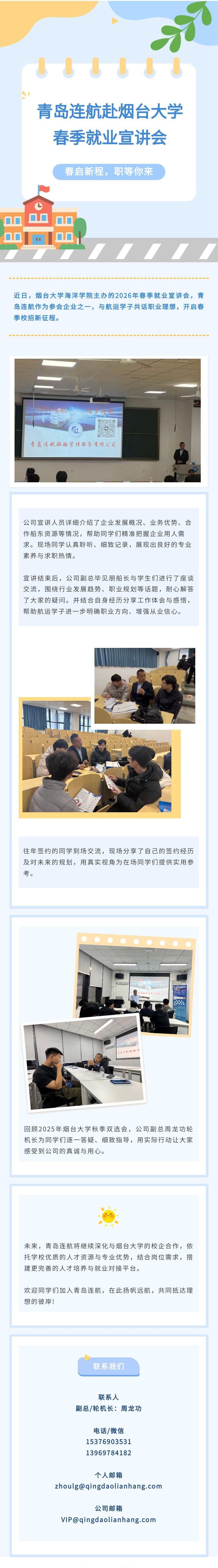 青島連航赴煙臺大學(xué)春季就業(yè)宣講會
